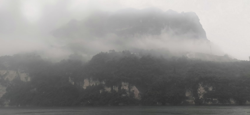 當(dāng)天清晨我們從武昌站出發(fā),兩個(gè)小時(shí)便到了宜昌東站,接著乘坐旅游巴士前往胡金灘碼頭,一路上途經(jīng)西陵峽,透過車窗提前感受到了大自然的壯觀。臨近景區(qū)的那條上山路讓我想起了恩施大峽谷,沿山路上也是有很多土家餐館,不過山路沒有大峽谷崎嶇。很快我們就進(jìn)入了三峽人家風(fēng)景區(qū),它位于長江三峽西陵峽段,地處三峽大壩和葛洲壩之間,橫跨燈影峽兩岸,以其“一肩挑兩壩,一江攜兩溪”的獨(dú)特地理位置優(yōu)勢(shì),成為了長江三峽黃金旅游線上的一顆璀璨明珠。大家滿懷期待的心情登上渡船,終于真實(shí)地體會(huì)到了三峽人家的雄渾之美,站在渡船二樓,清風(fēng)撲面而來,讓人心曠神怡。雖然那天烏云密布,陰霧迷漫,但多了一絲蒼涼之美、陰柔之美。