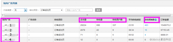 (1)A廣告位所在的頁面點擊量、轉化量、轉化明細等數據;